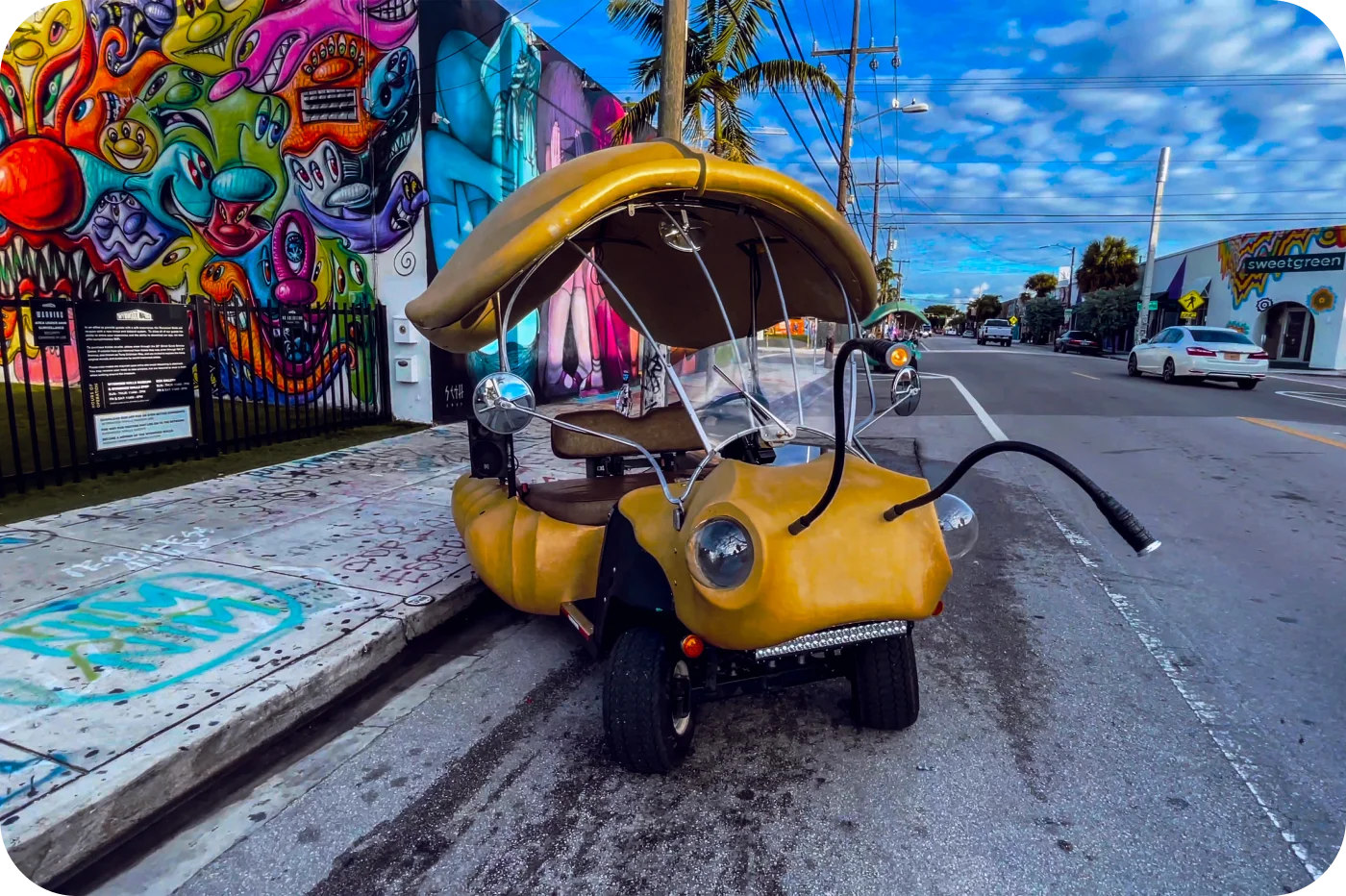 Enjoy in our Fanciest golfcar and visit the must important art walls and places in Wynwood.